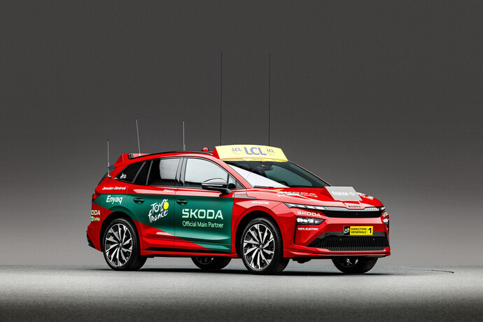 Nur drei Tage nach dem Beginn der Frauen-Fußball-Europameisterschaft beginnt morgen das nächste sportlich Großereignis: Zum 112. Mal findet die dreiwöchige Tour de France statt. Skoda ist erneut Hauptpartner des berühmtesten Fahrrad-Etappenrennens der Welt. Der Automobilhersteller stellt dem Veranstalter über 200 Begleitfahrzeuge zur Verfügung, die alle entweder vollelektrisch oder mit Plug-in-Hybridantrieb fahren. Darunter sind auch gleich zwei „Red Cars“ – ein Enyaq und ein Superb iV – als Führungsfahrzeug für Rennleiter Christian Prudhomme. Skoda, dessen Unternehmenswurzeln im Fahrradbau liegen, ist außerdem wieder Sponsor des grünen Trikots für den punktbesten Fahrer, und stellt die Trophäen für den Gesamtsieger, die Führenden der Punktewertung und der Bergwertung sowie den besten Nachwuchsfahrer.